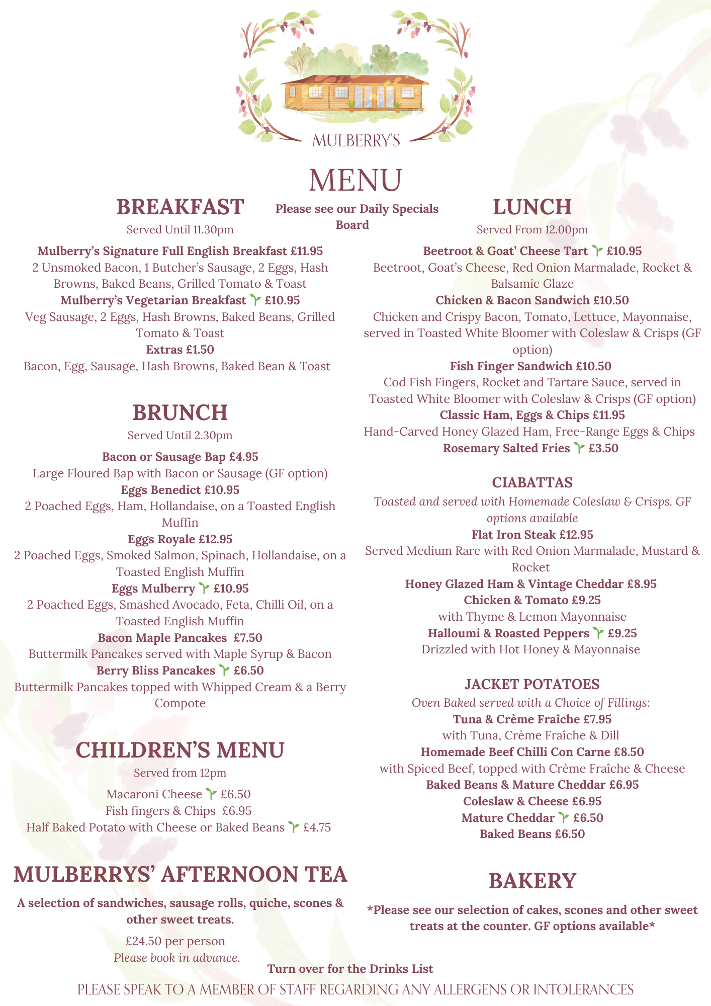 our menu OUR NEW 2026 MENU View fullsize View fullsize We’ll also be offering a very tempting Afternoon Tea, served all day Thursday-Sunday. View fullsize